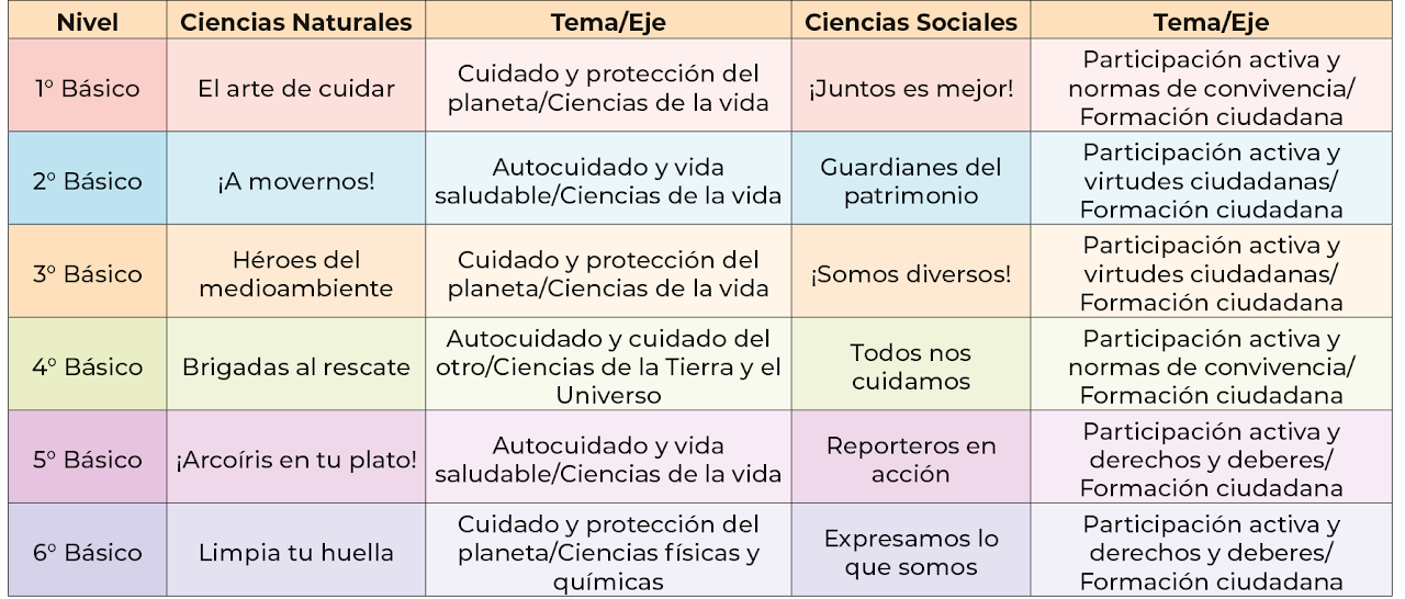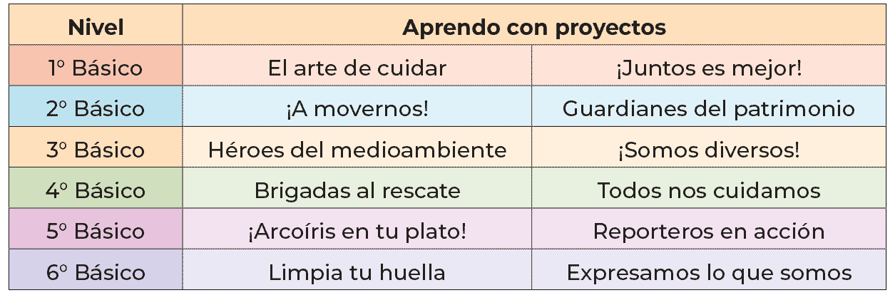 La colección consta de 12 proyectos de 1° a 6° Básico: