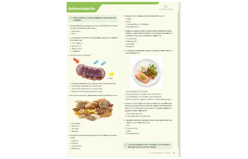 Actividades para que los alumnos se autoevalúen y sean conscientes de su aprendizaje. Con soluciones al final del libro.