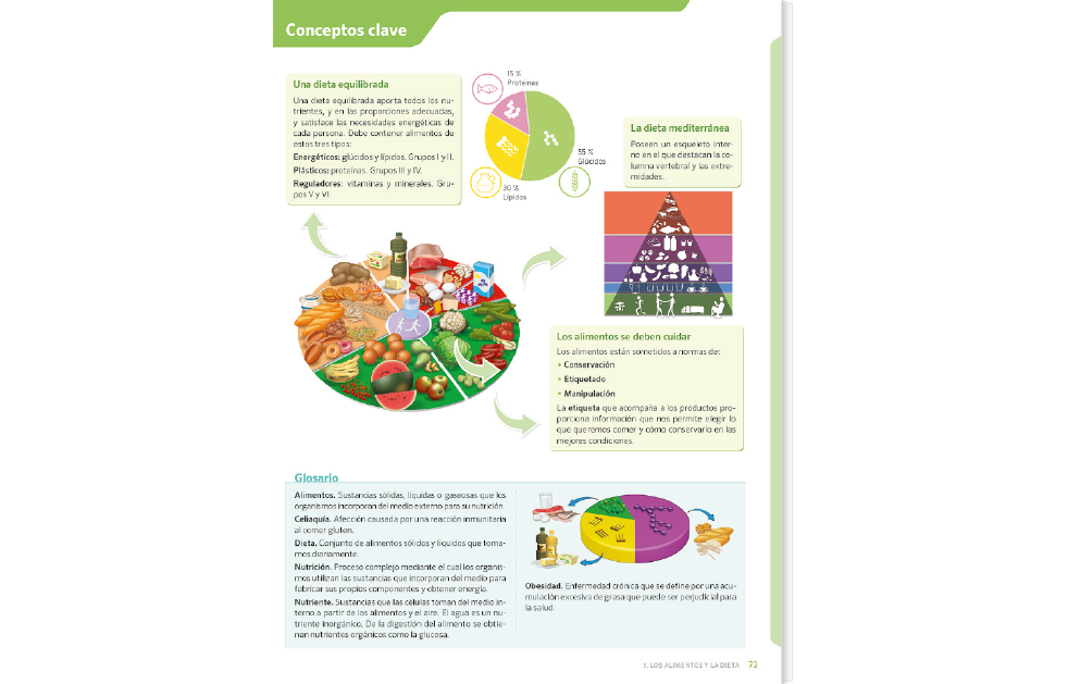 Saberes básicos organizados, estructurados y rigurosos. Además, los contenidos están apoyados en gran cantidad de elementos visuales (gráficos, esquemas, fotografías e ilustraciones) para facilitar la comprensión.
