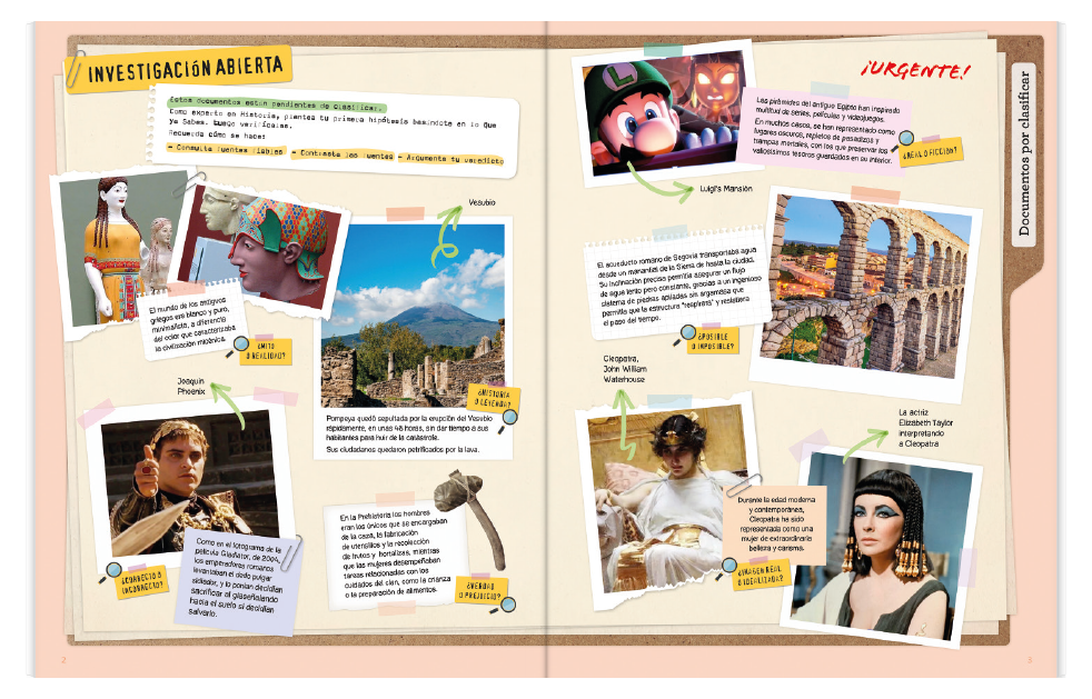 El libro de Geografía e Historia de Matices cuenta con 12 situaciones de aprendizaje con la siguiente estructura: