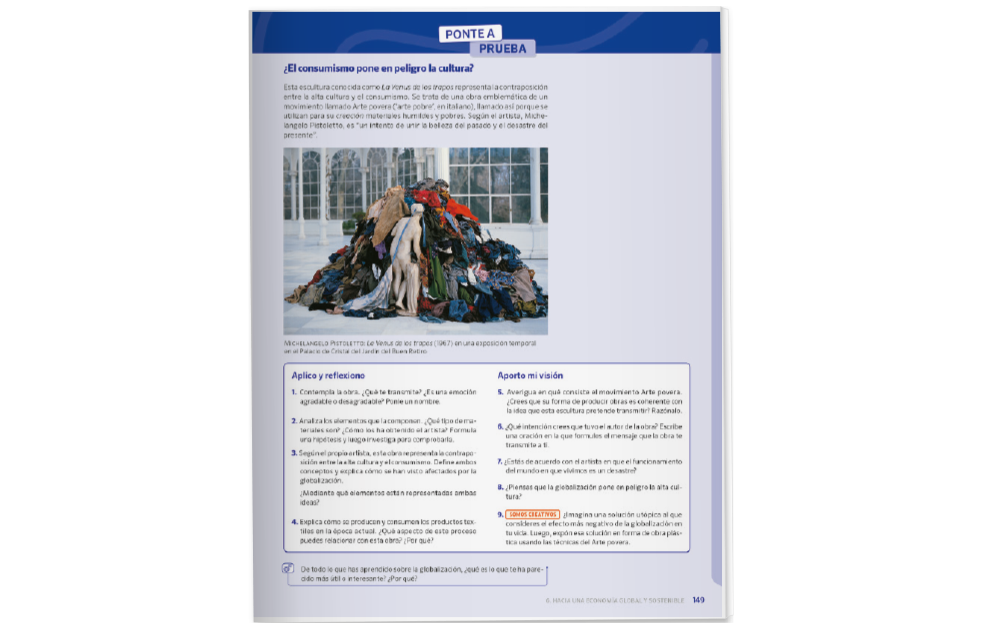 - Tarea final en la que se trabajan las competencias a partir de un texto, una imagen, una obra de arte… Se repasan y aplican contenidos, además de motivar a la reflexión crítica.